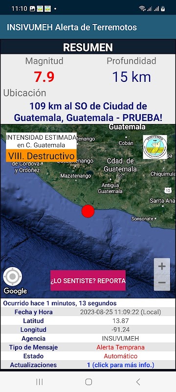INSIVUMEH Alerta de Terremotos รุ่นเก่า