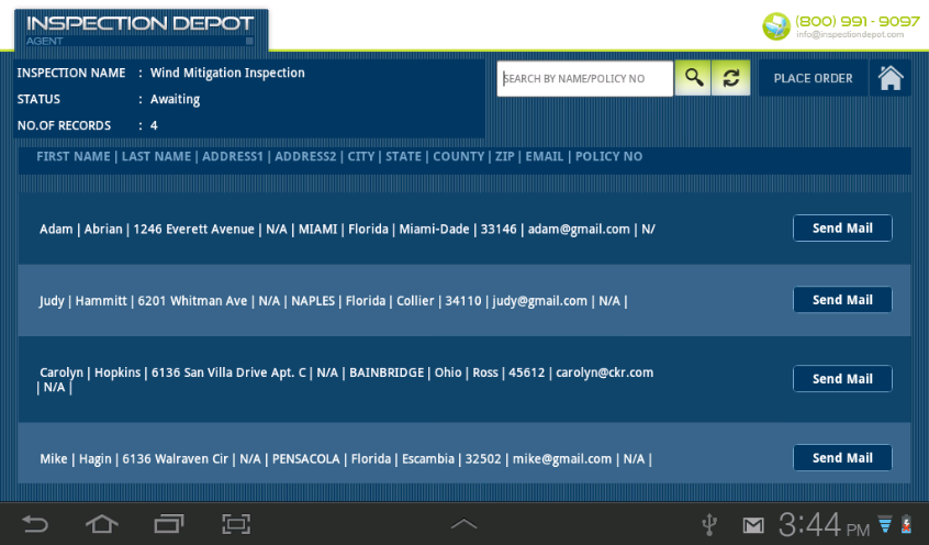 Agents can place orders from everything inspection related, such as replacement cost estimates, 4 point inspections, wind mitigation inspections, roof surveys, sinkhole inspections, and more, and place orders based on one inspection or packaged. Loyalty reward points are also available for repeat customers on select inspections as offered by the approved credentialed inspection company network.