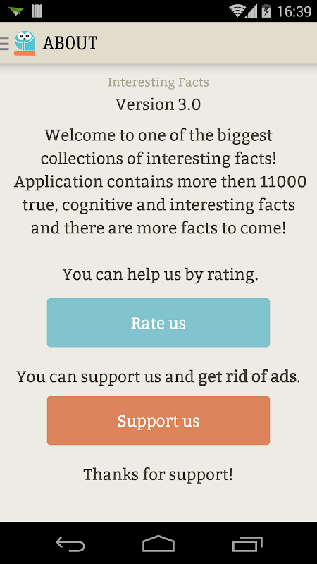 ยินดีที่จะเป็นหนึ่งในคอลเลกชันที่ใหญ่ที่สุดของข้อเท็จจริงที่น่าสนใจ! แอพลิเคชันที่มีมากขึ้นแล้ว 12000 ข้อเท็จจริงจริงและองค์ความรู้ที่น่าสนใจและมีข้อเท็จจริงมากขึ้นที่จะมา!
