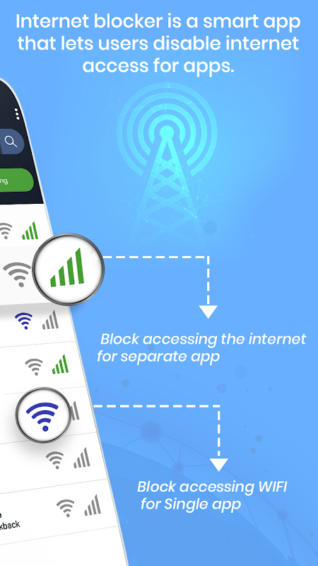ด้วยแอพ Internet Blocker ตอนนี้คุณสามารถบล็อกแอพบางตัวจากการเชื่อมต่อกับอินเทอร์เน็ต สิ่งนี้ช่วยให้ผู้ใช้ลดการใช้ข้อมูลหยุดแอพไม่ให้ดาวน์โหลดข้อมูลพื้นหลังจัดการการใช้งานแบตเตอรี่และปรับปรุงความเป็นส่วนตัว ช่วยให้คุณบล็อกการเข้าถึงอินเทอร์เน็ตได้อย่างสมบูรณ์ด้วยการกดเพียงปุ่มเดียว
