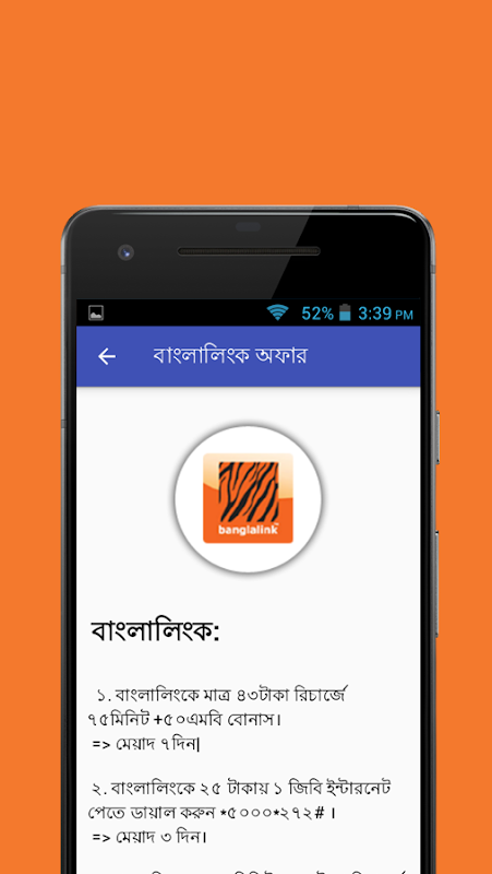 แอพนี้มีไว้เพื่อความสนุกเท่านั้น แอพนี้ให้คำแนะนำและเคล็ดลับการใช้ข้อมูลอินเทอร์เน็ตสำหรับผู้ให้บริการมือถือในบังคลาเทศ ผู้ให้บริการมือถือทุกรายตรวจสอบยอดเงินในบัญชีซิมของคุณไม่เคยง่ายขนาดนี้มาก่อน เพียงเปิดแอปนี้และรับรายละเอียดทั้งหมดของคุณ เช่น การตรวจสอบยอดเงินในบัญชี การตรวจสอบยอดเงินคงเหลือทางอินเทอร์เน็ต เป็นต้น คุณสามารถเลือกแพ็กเกจอินเทอร์เน็ต แพ็กเกจรายนาที เรากำลังจัดเตรียมเคล็ดลับข้อมูลอินเทอร์เน็ต เทคนิคเหล่านี้รวบรวมมาจากหลายแหล่ง ดังนั้นคุณจึงสามารถรับข้อมูลอินเทอร์เน็ตด้วยลูกเล่นมากมาย เรากำลังพยายามให้เคล็ดลับที่เจ๋งและดีแก่คุณ อย่างที่คุณทราบกันดีว่าข้อมูลอินเทอร์เน็ตมีค่าใช้จ่าย และไม่ฟรีในประเทศใด ๆ ดังนั้นแอปนี้จึงเป็นเพียงความสนุกเท่านั้น แอปพลิเคชั่นใช้งานง่ายและเป็นมิตรกับผู้ใช้