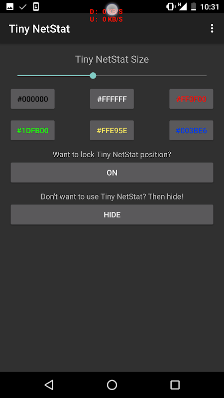 ตัวบ่งชี้ที่ความเร็วในการดาวน์โหลดอัพโหลดซึ่งคุณสามารถย้ายโดยการลากและวางที่ใดก็ได้