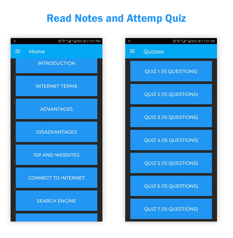 แอปพลิเคชั่นนี้มีบันทึกย่อพื้นฐานของอินเทอร์เน็ตที่สอนในสถาบันการศึกษาสำหรับนักเรียนไอที บทนี้ครอบคลุมหัวข้อ: