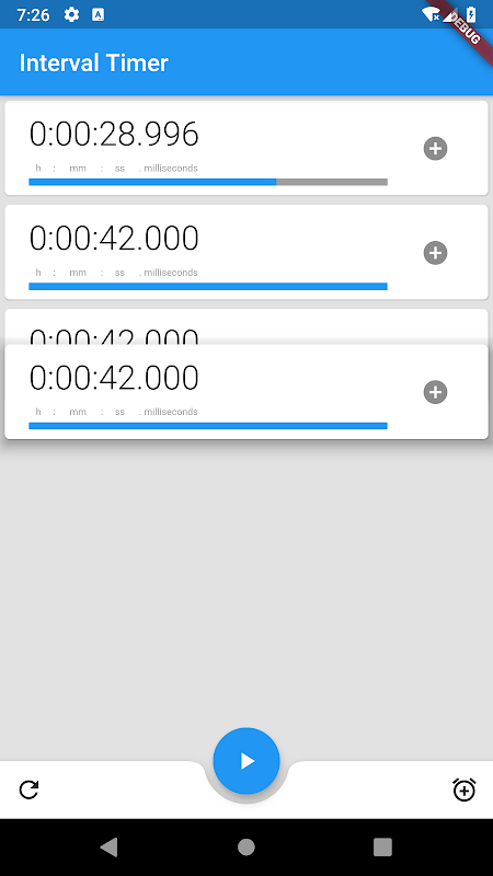 A material design inspired interval timer. Easy to use with common gestures like swipe to delete, hold and drag & drop for sorting. Only works with screen on.