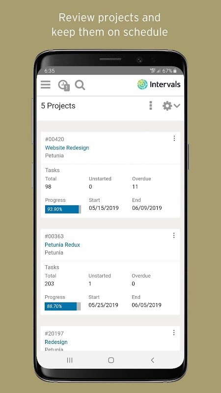 สหายมือถือสำหรับบัญชีช่วงเวลาบนเดสก์ท็อปของคุณ ติดตามเวลาของคุณจัดการงานและเช็คอินโครงการของคุณได้อย่างง่ายดายเมื่อคุณไม่อยู่ที่โต๊ะทำงานด้วยแอพ Mobile Intervals