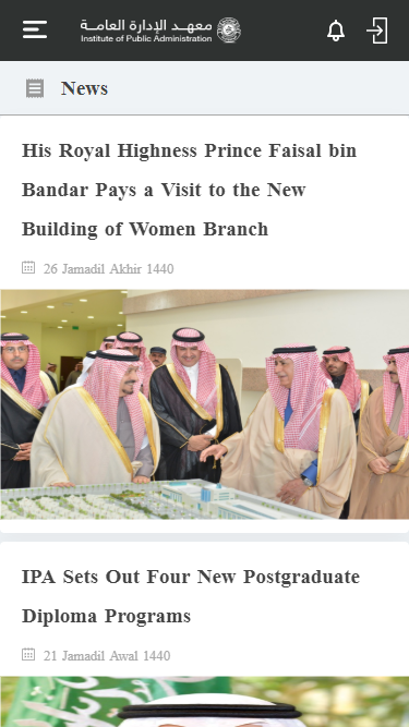 แอปอย่างเป็นทางการของสถาบันการบริหารรัฐกิจ มีให้บริการในภาษาอาหรับและภาษาอังกฤษ