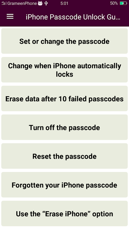 Guide for iPhone Passcode Unlock App Guide And Tricks เป็นแอปพลิเคชั่นที่มีประโยชน์มาก แอพนี้ใช้สำหรับเป็นแนวทางเท่านั้น