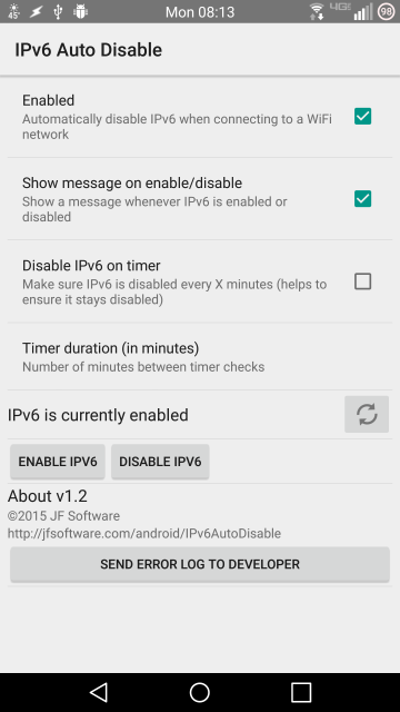 app นี้จะปิดการเข้าถึง IPv6 บนโทรศัพท์ของคุณโดยอัตโนมัติเมื่อคุณเชื่อมต่อกับเครือข่ายไร้สายใหม่