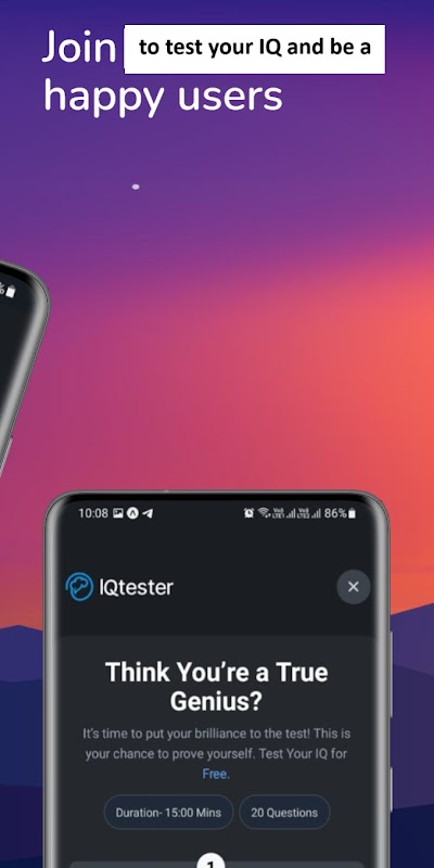 IQ Test คือแอปพลิเคชันมือถือที่ออกแบบมาเพื่อประเมินสติปัญญาของคุณผ่านชุดคำถามที่ออกแบบมาอย่างพิถีพิถัน ซึ่งวัดผลตรรกะ การจดจำรูปแบบ ความจำ คณิตศาสตร์ และการคิดวิเคราะห์ แอปพลิเคชันนี้จำลองวิธีการทดสอบ IQ ที่ได้มาตรฐาน เพื่อให้การประเมินคะแนนเชาวน์ปัญญา (IQ) ของคุณแม่นยำยิ่งขึ้น