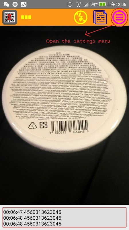 1. รูปแบบบาร์โค้ดที่รู้จัก: QR Code, Data Matrix, Aztec, PDF 417, ITF MaxiCode, Code 39, Code 93, Code 128, Codabar, UPC-A, UPC-E, EAN-8, EAN-13, UPC /EAN ,RSS-14, RSS-ขยาย