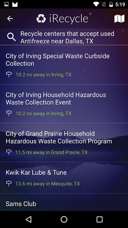 iRecycle can tell you how, where and when to recycle just about anything. Using your current location, ZIP code, address or city, get access to vital details for collection points, such as website, phone number, directions, hours of operation and other materials collected.