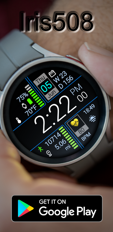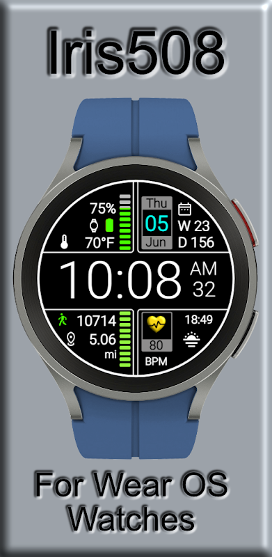 • เฉพาะ Wear OS เท่านั้น: หน้าปัดนาฬิกา Iris508 ได้รับการออกแบบมาโดยเฉพาะสำหรับนาฬิกาอัจฉริยะที่ใช้ระบบปฏิบัติการ Wear OS