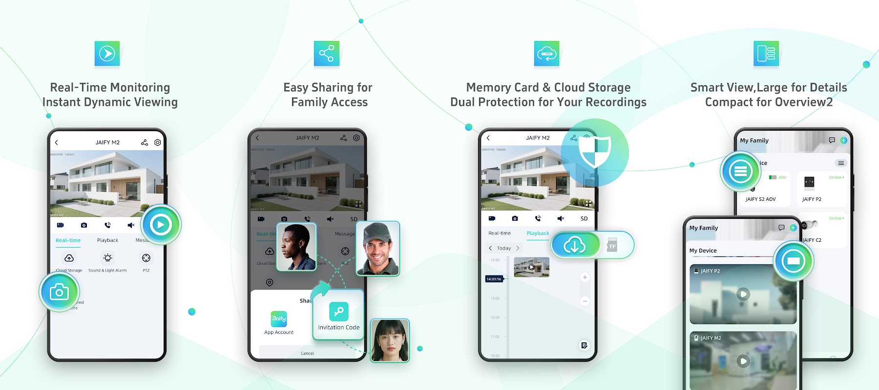 Jaify เป็นแพลตฟอร์มการจัดการอุปกรณ์อัจฉริยะที่เน้นผู้ใช้ซึ่งผสานรวมเทคโนโลยีเสียงและวิดีโอประสิทธิภาพสูงที่ปลอดภัยเข้ากับบริการที่เสถียรและเชื่อถือได้ ด้วย Jaify คุณสามารถตรวจสอบและควบคุมอุปกรณ์อัจฉริยะของคุณจากระยะไกลได้อย่างง่ายดาย ปรับแต่งสถานการณ์อัจฉริยะให้เหมาะกับไลฟ์สไตล์ของคุณ และแบ่งปันการเข้าถึงอุปกรณ์กับครอบครัวและเพื่อน ๆ ด้วยการแตะเพียงครั้งเดียว