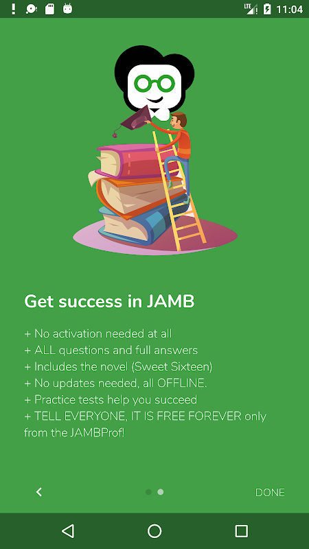 This is JAMBProf. The only JAMB preparation tool that is entirely offline and free (questions and answers, explanations etc).