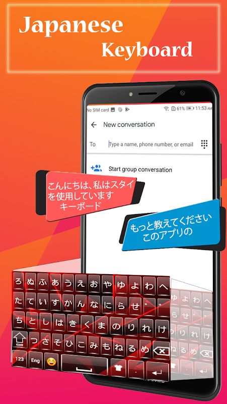 แป้นพิมพ์แชทภาษาญี่ปุ่นเป็นแป้นพิมพ์ที่ง่ายที่สุดที่คุณจะพบในการแชทและข้อความ คุณไม่จำเป็นต้องเปลี่ยนไปใช้แอปพลิเคชันภาษาญี่ปุ่นอีกต่อไป ภาษาญี่ปุ่นถูกสร้างไว้ในแป้นพิมพ์ของคุณ! ซึ่งหมายความว่าคุณสามารถพิมพ์ไปยังภาษาญี่ปุ่นในแอปพลิเคชันใดก็ได้ในโทรศัพท์ของคุณ แป้นพิมพ์ภาษาอังกฤษเป็นภาษาญี่ปุ่นเป็นแป้นพิมพ์ภาษาญี่ปุ่นที่สมบูรณ์แบบซึ่งมีปุ่มเดียวที่เพิ่มเข้ามาเพื่อเปลี่ยนเป็นภาษาญี่ปุ่น ใช้งานได้กับแอปโซเชียลมีเดียและแอปอื่น ๆ ทั้งหมดที่คุณต้องใช้แป้นพิมพ์ภาษาญี่ปุ่นเพื่อเขียนข้อความภาษาญี่ปุ่น
