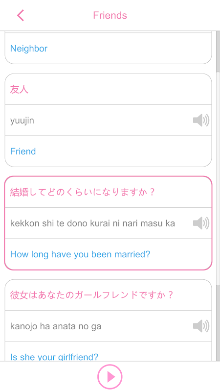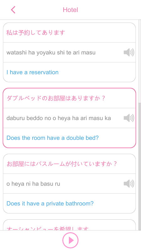 ไม่ว่าคุณจะไปเที่ยวญี่ปุ่นหรือต้องการเรียนรู้ที่จะพูดภาษาต่างประเทศแอพนี้จะช่วยให้คุณเรียนรู้สำนวนและคำศัพท์ภาษาญี่ปุ่นในกระบวนการที่รวดเร็วง่ายและสนุกสนาน