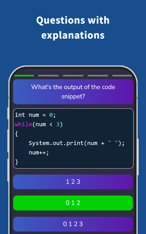 เรียนรู้ Java โดยการไต่อันดับ (เช่นในเกม) เพื่อทำงานให้เสร็จ ด้วยวิธีนี้ คุณจะพร้อมทำงานด้วยการทำสิ่งท้าทายให้เสร็จและแบบฝึกหัดมากมาย แอปนี้เหมาะสำหรับทั้งผู้เริ่มต้นใช้งานและผู้เรียน Java ที่มีประสบการณ์มากขึ้น คุณสามารถเริ่มต้นเส้นทางการเขียนโค้ด Java หรือขยายความรู้ที่มีอยู่ของคุณในหัวข้อขั้นสูง เช่น OOP - การเขียนโปรแกรมเชิงวัตถุ