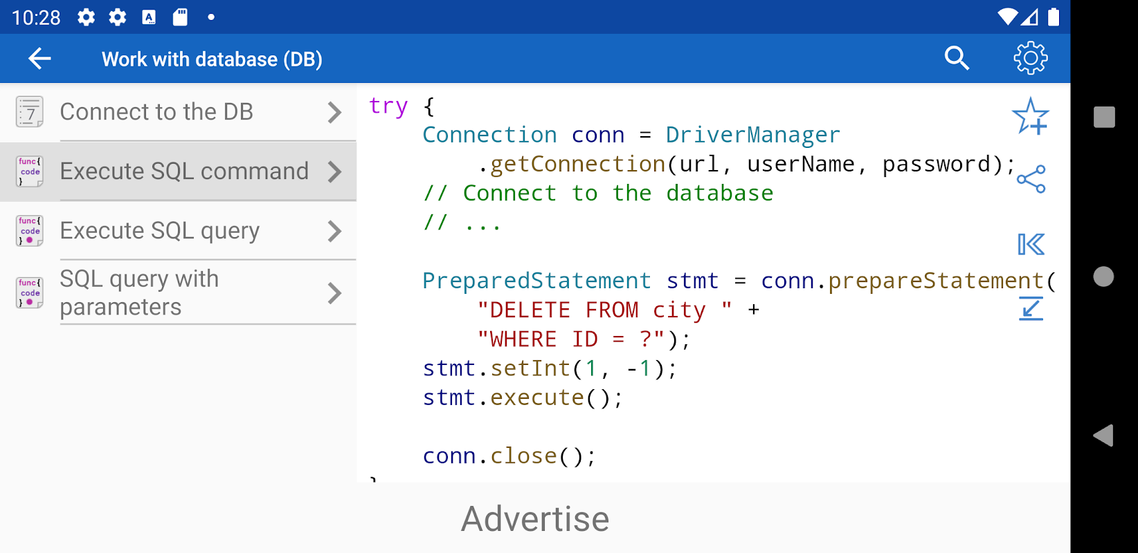 ✓แอปพลิเคชันเป็นเครื่องมือที่ดีในระหว่างการสอบหรือการเตรียมตัวสำหรับการสัมภาษณ์เนื่องจากมีการอ้างอิงถึงการใช้งานที่ใช้บ่อยในภาษาโปรแกรมต่างๆ