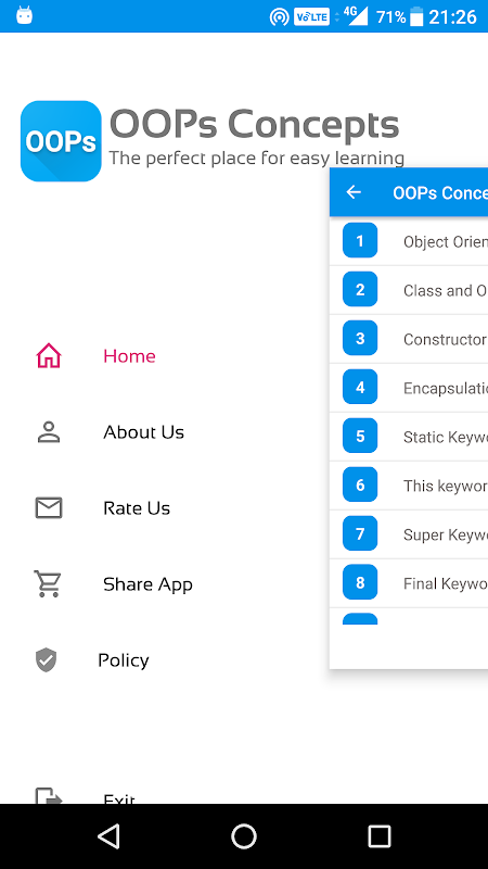 แอพนี้ทำงานอย่างสมบูรณ์กับออฟไลน์ วิธีง่ายๆในการพื้นฐาน "Java OOPs Concepts" และแนวคิดขั้นสูงจากแอพนี้