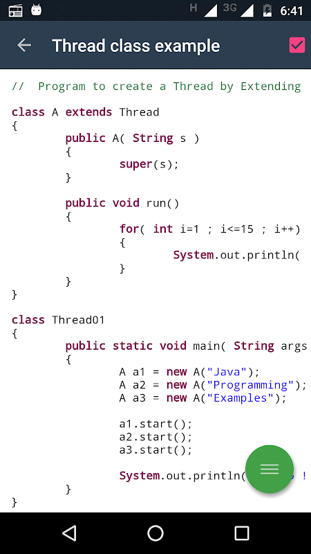 This app helps you refer to a great collection java programs and theory on the go and Helps you improve Logical thinking of various problems related to Programming .Its an Application to give source code and output for various Java Programs as well as theory.