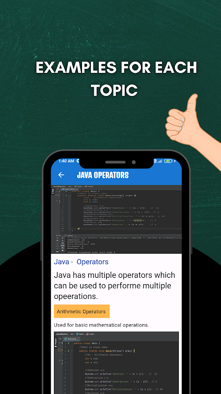 ปลดล็อกโลกแห่งการเขียนโปรแกรม Java ด้วยแอปการเรียนรู้ Java ที่ครอบคลุมของเรา! ออกแบบมาสำหรับผู้เรียนทุกระดับตั้งแต่ผู้เริ่มต้นจนถึงโปรแกรมเมอร์ขั้นสูง แอปนี้นำเสนอหลักสูตรที่มีโครงสร้างซึ่งจะแนะนำคุณเกี่ยวกับแนวคิดที่สำคัญและการใช้งานจริง