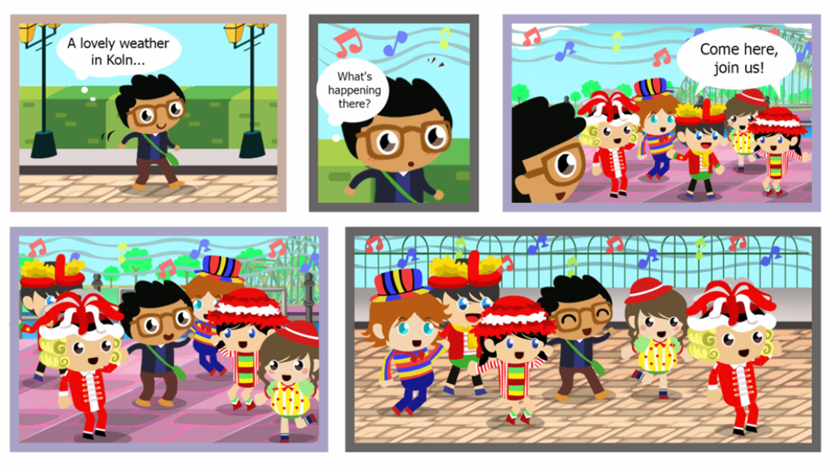 Di kota-kota tersebut, kamu dapat belajar mengenai kehidupan sehari-hari mereka yang tinggal di Jerman. Kamu akan sering melihat orang yang sedang berolahraga, bercakap-cakap di sebelah kafe, dan bahkan ada seniman musik jalanan. Kamu bahkan dapat mendengarkan lagu-lagu yang dimainkan oleh para pemusik jalanan tersebut. Di salah satu kota yang dapat kamu jelajahi, di Köln, kamu akan dapat melihat karnaval yang sedang berlangsung. Kamu dapat melihat berbagai informasi tentang karnaval tersebut setelah kamu ambil fotonya.