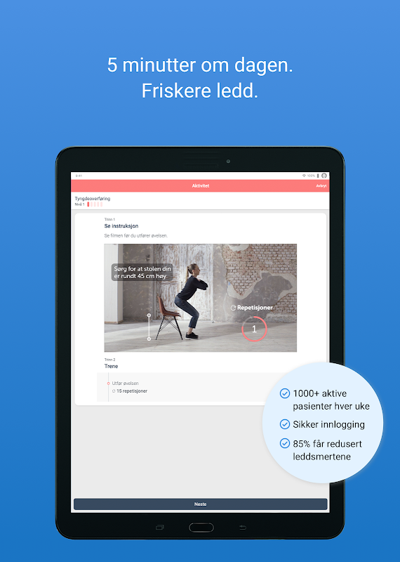 ลดข้อต่อของคุณด้วยการฝึก 5 นาทีต่อวัน! รักษาอาการปวดสะโพกและข้อเข่าของคุณด้วยโปรแกรมการฝึกอบรมส่วนบุคคล การรักษาทั้งหมดฟรีกับบัตรฟรีค่ารักษาผู้ป่วยสำหรับการปรึกษาหารือที่คุณมีกับแพทย์หรือนักกายภาพบำบัดที่จะมาข้างนอก คุณได้รับการวินิจฉัยโรคศัลยกรรมกระดูกการให้คำปรึกษาด้านกายภาพบำบัดและการศึกษาแบบโต้ตอบเกี่ยวกับโรคข้อเข่าเสื่อมและสุขภาพโดยทั่วไป