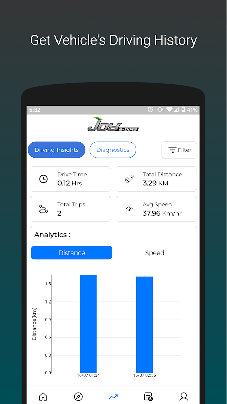 คุณสามารถเชื่อมต่อกับ Joy E-Bike และจัดการได้ รับตำแหน่งเรียลไทม์และสถานะแบตเตอรี่ คุณสามารถติดตาม ล็อก/ปลดล็อกรถได้จากระยะไกล วิเคราะห์ประวัติการขับขี่ด้วยสถิติ วางแผนการเดินทางของคุณสำหรับข้อกำหนดในการชาร์จ ตั้งค่า geofence และการแจ้งเตือนแบตเตอรี่ที่ปรับแต่งได้เพื่อรับการแจ้งเตือนทันที รับข้อมูลเกี่ยวกับผลกระทบต่อสิ่งแวดล้อมในเชิงบวกจากการใช้รถของคุณและรู้สึกภูมิใจที่จะแบ่งปันภายในช่องทางโซเชียลมีเดียของคุณ