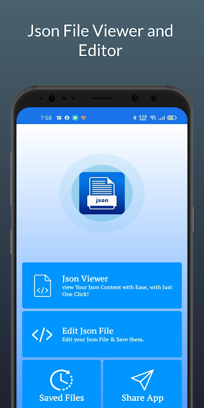 อ่านและแก้ไขไฟล์ JSON เป็นแอปพลิเคชัน Android ที่รองรับ JavaScript Object Notation (JSON) ซึ่งเป็นรูปแบบข้อความมาตรฐาน JSON เป็นรูปแบบข้อความซึ่งแสดงถึงฐานข้อมูลที่มีโครงสร้างใน JavaScript การดูข้อมูลไฟล์ JSON ไม่ใช่เรื่องง่ายบนสมาร์ทโฟน Android โปรแกรมอ่านและแก้ไขไฟล์ JSON ของแอปของเรา ได้เปลี่ยนเทรนด์นี้และทำให้ผู้ใช้ Android เปิดและดูไฟล์และแก้ไขได้ง่ายในคลิกเดียว