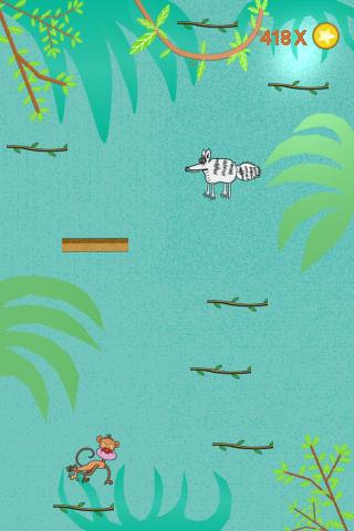 This is fun monkey jump game. Here your goal is to make highest points by jumping more an more without falling down or hit by raccoon.