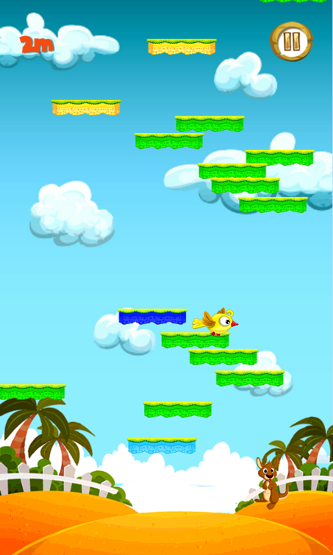 Welcome to the jumping game that is perfect for boys and girls of all ages! It is addictive and fun, and it will quickly become your new favourite game. The jumpy kangaroo is up for any challenge, so download free Jumpy Kangaroo game app and have fun in the savanna! Play the latest jumpy kangaroo game as it will surely make your day. You need to collect items to get acceleration and to protect yourself from the enemies. There are endless platforms that you need to jump on, so stay focused to get the high score! The popular kangaroo game is addictive, so get ready for a new jumping challenge. The kangaroo is the best jumpy hero, so make sure you do net let him fall! Download the latest jumping game on your smartphone and your mission can begin.