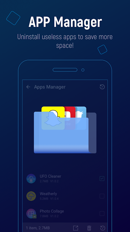 Helps clean residual cache system files often left by uninstalled apps to free up Android