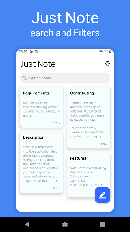 Just Note เป็นแอปที่สวยงามเรียบง่ายและใช้งานง่ายที่ให้คุณสร้าง จัดการ และจัดระเบียบบันทึกย่อของคุณบนอุปกรณ์ Android ไม่ว่าคุณจะต้องจดไอเดีย ทำรายการสิ่งที่ต้องทำ หรือติดตามข้อมูลสำคัญ แอปนี้มอบวิธีที่สะดวกและมีประสิทธิภาพในการทำเช่นนั้น