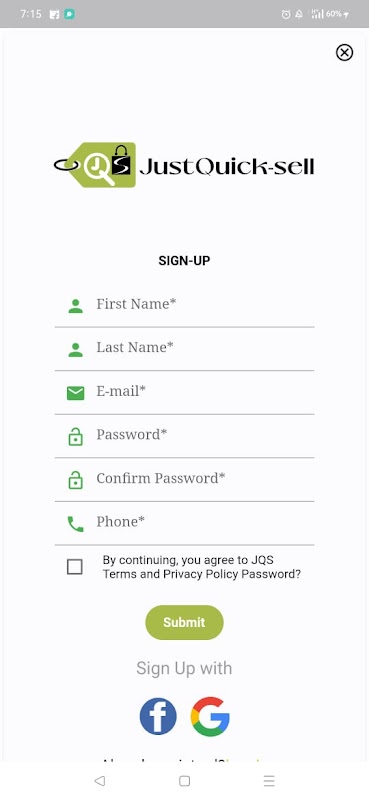 ยินดีต้อนรับสู่ JustQuickSell แอปพลิเคชัน Android ชั้นนำที่ออกแบบมาเพื่อการซื้อและขายสินค้าที่รวดเร็ว มีประสิทธิภาพ และไม่ยุ่งยาก ด้วย JustQuickSell คุณสามารถเชื่อมต่อกับเครือข่ายผู้ซื้อและผู้ขายที่มีศักยภาพมากมาย ทำให้การทำธุรกรรมรวดเร็วและตรงไปตรงมา