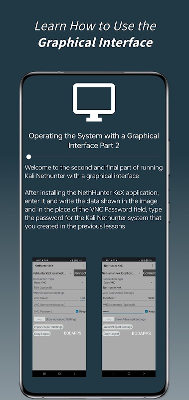 ด้วย Kali NetHunter Tutorials คุณจะได้เรียนรู้วิธีการติดตั้ง Kali NetHunter พื้นฐานของระบบ และวิธีการใช้อินเทอร์เฟซแบบกราฟิกเพื่อใช้งานระบบ นอกเหนือจากการทำความคุ้นเคยกับส่วนต่างๆ ของเครื่องมือ แอปนี้ได้รับการออกแบบให้มีอินเทอร์เฟซผู้ใช้ที่ราบรื่นและใช้งานง่าย ซึ่งรองรับโหมดมืด และบทเรียนต่างๆ จะถูกจัดเรียงในลักษณะที่ช่วยให้คุณเข้าใจพื้นฐานทั้งหมดของ Kali NetHunter ไปจนถึงขั้นเชี่ยวชาญ