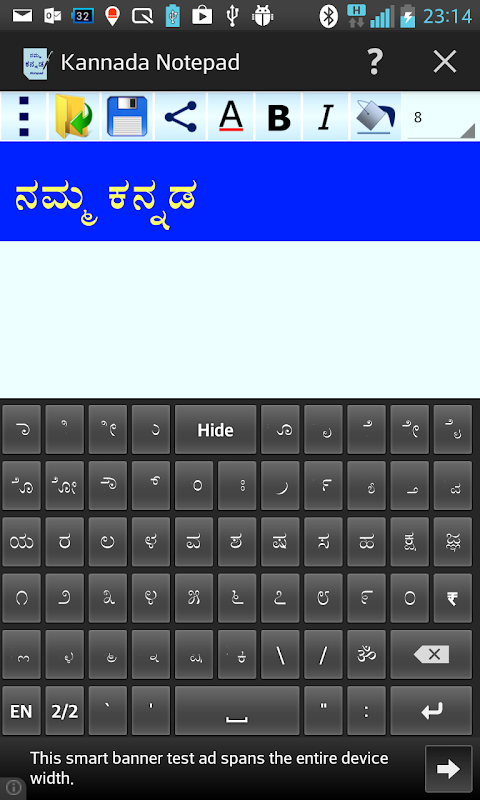 You can write, save, share and send Kannada texts using Kannada Notepad.