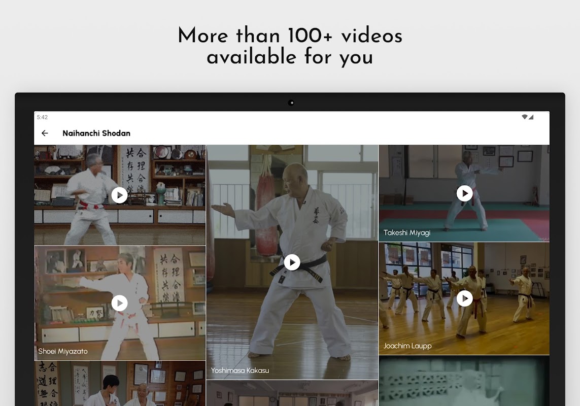 แอพนี้จะให้เนื้อหาที่คัดสรรเกี่ยวกับ Katas ที่แตกต่างกัน คุณจะสามารถดูวิดีโอที่เซนเซใช้ท่ากะตะและวิดีโออื่นๆ ที่พวกเขากำลังสอนหรือแก้ไขให้กับนักเรียน