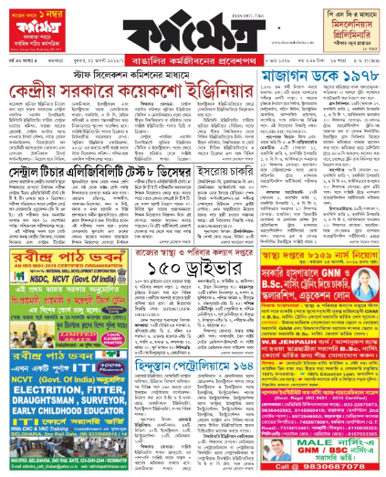 karmakshetra employment paper in bengali this week pdf download for occupation of Central, West Bengal Governments, Public Sector Undertakings, Autonomous Bodies, Universities, affirmation sees for expert courses, test notification and aftereffects of associations like WBCS, School Service Commission, SSC and other general enlistment associations and mid-level profession advancement openings.