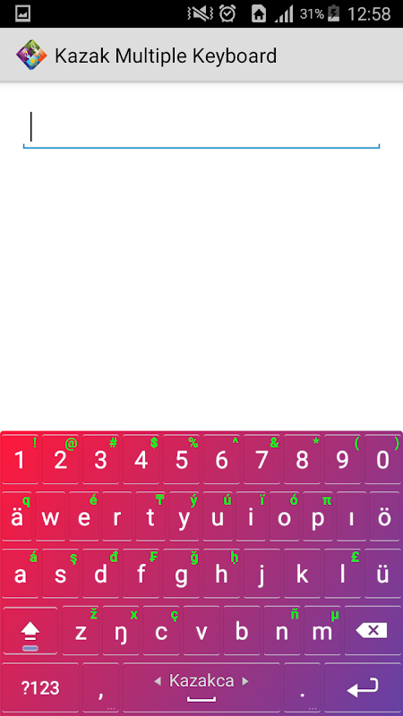 แป้นพิมพ์คาซัคสถานซึ่งสนับสนุนทุกตัวอักษรที่คาซัคสถานสำหรับ Android