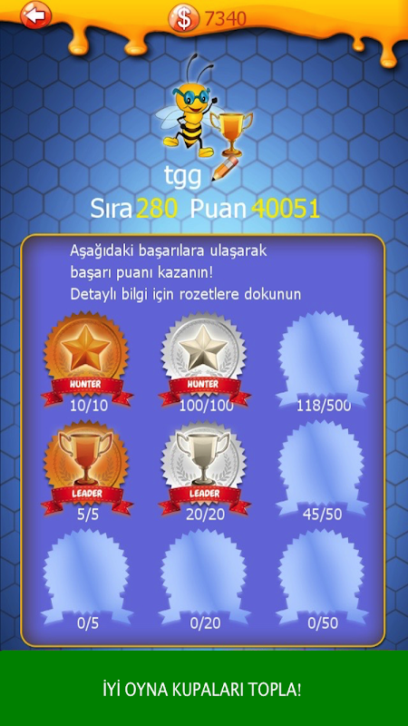 Başarılarınızı ve oyun gelişiminizi takip edebilir, kazandığınız başarılara göre ek puan alırsınız.