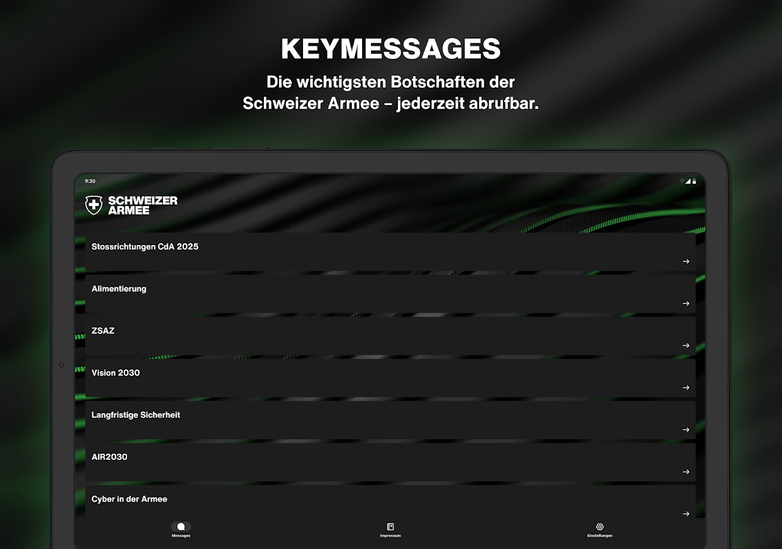 แอพนี้ให้ภาพรวมของปัญหาและข้อความสำคัญของกองทัพบก