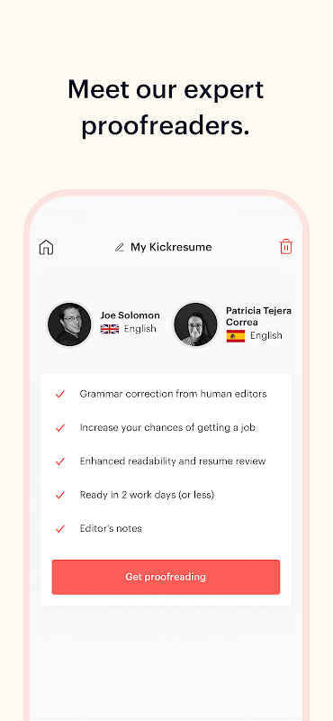 เครื่องมือสร้างเรซูเม่ AI บนมือถือของ Kickresume ช่วยให้คุณสร้างและแก้ไขเรซูเม่และจดหมายสมัครงานได้อย่างง่ายดายทุกที่ทุกเวลา คุณสามารถใช้งานได้บน iPhone ของคุณ หรือจะกลับไปทำต่อจากที่ค้างไว้บนเดสก์ท็อปก็ได้ (และดำเนินการต่อบน iPhone อีกครั้งหากต้องการ) เรซูเม่ CV จดหมายลาออก และจดหมายสมัครงานทั้งหมดของคุณจะถูกเก็บไว้ในคลาวด์และเข้าถึงได้ง่ายจากทุกที่ ทุกอุปกรณ์ และทุกเวลา