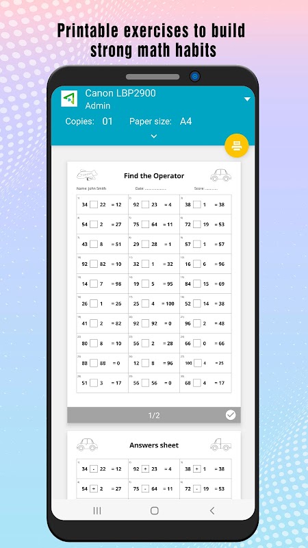 Math Sheet Maker ช่วยให้ผู้ปกครองและครูสร้างแบบฝึกหัดคณิตศาสตร์แบบพิมพ์ได้สำหรับนักเรียนระดับประถมศึกษาได้อย่างง่ายดายจากสมาร์ทโฟนของคุณ