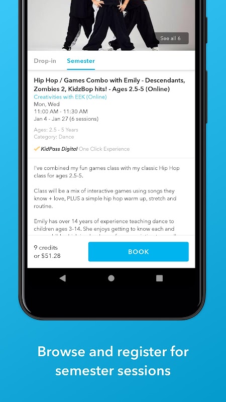 สมาชิก KidPass รับส่วนลดสูงสุด 70% สำหรับกิจกรรมดรอปดาวน์ค่ายฤดูร้อนออนไลน์และโปรแกรมภาคการศึกษา ด้วยแอพของเราคุณสามารถเรียกดูตารางดูรูปถ่ายอ่านคำวิจารณ์จากผู้ปกครองคนอื่น ๆ และเรียนหนังสือได้ทุกที่