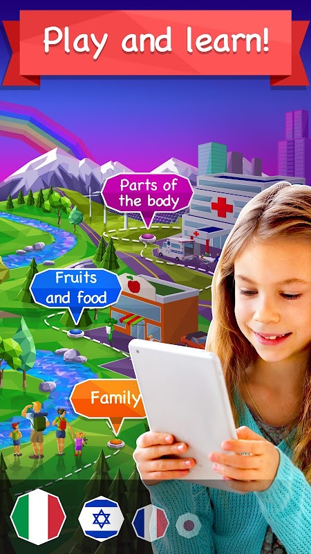 ดาวน์โหลดแอปภาษาต่างประเทศวันนี้ ลูกตัวน้อยของคุณก็จะสามารถกลายเป็นเด็กสองภาษา ในการเรียนรู้ภาษาสเปน ฝรั่งเศส เยอรมัน อิตาเลียน อังกฤษอั