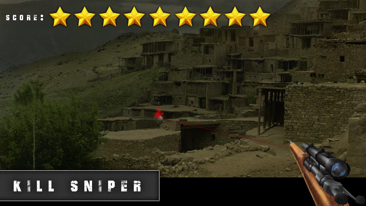 Sniper kill - this app game where you 'll kill the sniper in all sorts of different places of the world . Sniping can be clearly seen when they start to flare aim sight .