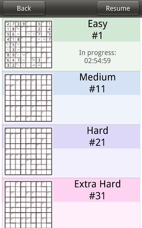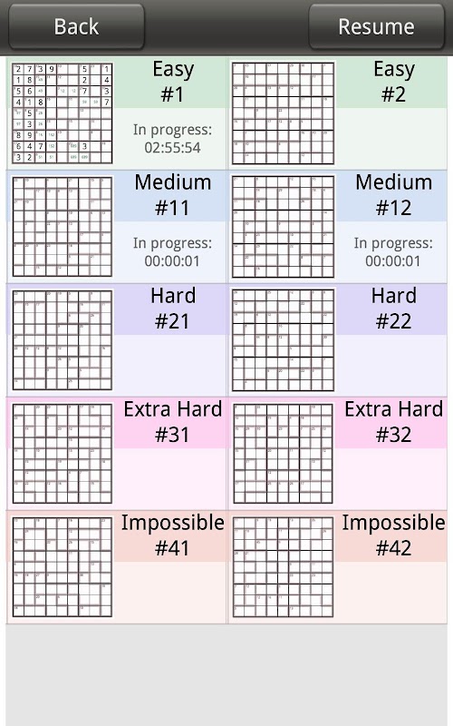 - Puzzle gallery -- scroll through puzzles and see your progress instantly