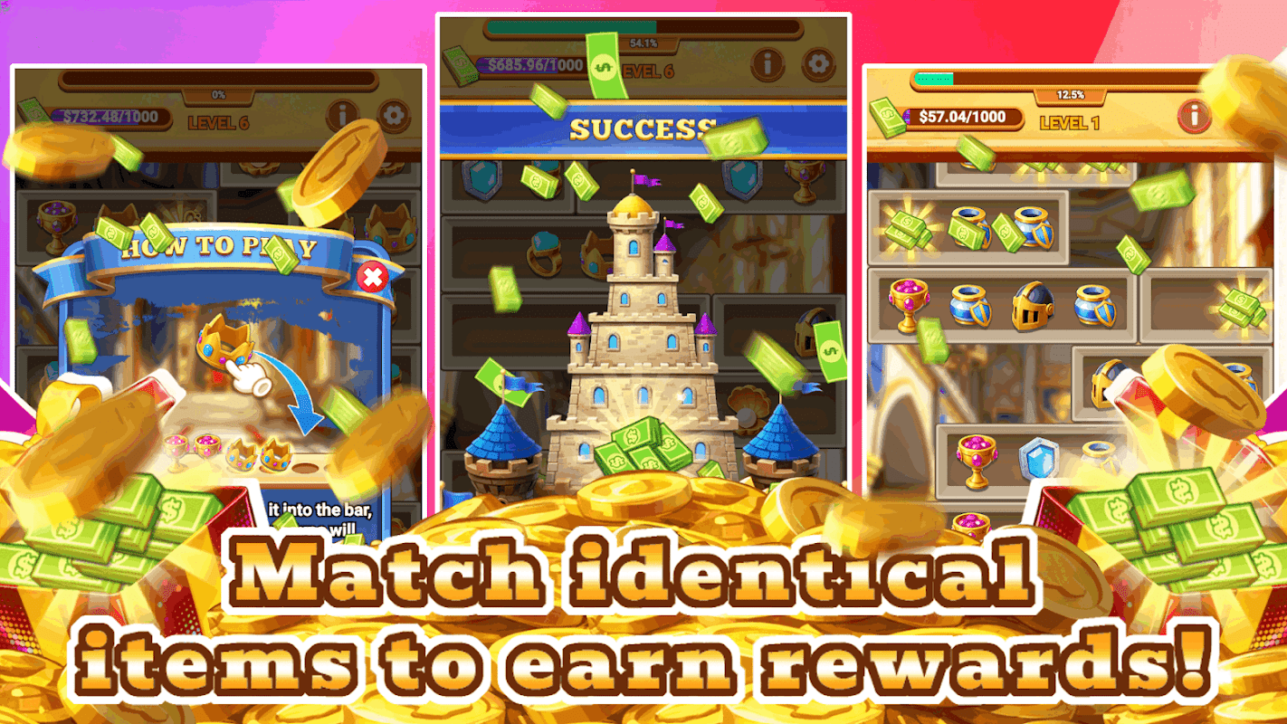 แตะที่ไอเทมเพื่อย้าย; แตะไอคอนใช้ไอเทมด้านล่างเพื่อยกเลิกและสลับตำแหน่ง เมื่อสะสมไอเทมพิเศษครบสามชิ้นและตรงกัน จะได้รับรางวัลที่เกี่ยวข้อง เมื่อเคลียร์ด่านและได้รับรางวัลหีบสมบัติ จะได้รับรางวัลเมื่อกระดานว่างเปล่าทั้งหมด เมื่อกรอบเก็บของมีไอเทมประเภทเดียวกันสามชิ้น ไอเทมเหล่านั้นจะถูกกำจัดออก ช่องเก็บของที่เคลียร์แล้วจะหายไป และช่องเก็บของด้านบนจะตกลงมาเพื่อเติมเต็มช่องว่าง เมื่อกำจัดไอเทมทั้งหมดบนกระดานแล้ว จะผ่านด่าน