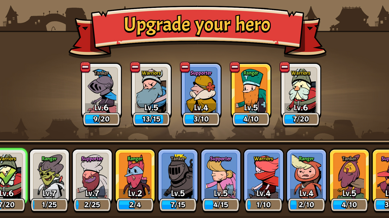 โดยการรวบรวม/เปลี่ยนการ์ดฮีโร่ และการจัดรูปแบบต่างๆ ผู้เล่นจะต่อสู้เพื่อชัยชนะ คุณสามารถสัมผัสประสบการณ์การต่อสู้ที่แตกต่างกันโดยได้รับฮีโร่ที่หลากหลาย เช่น นักรบ นักธนู รถถัง และผู้รักษา!
