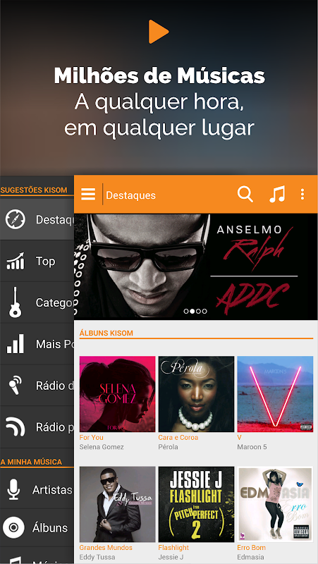 • A melhor música nacional e internacional espera por ti na App Kisom;